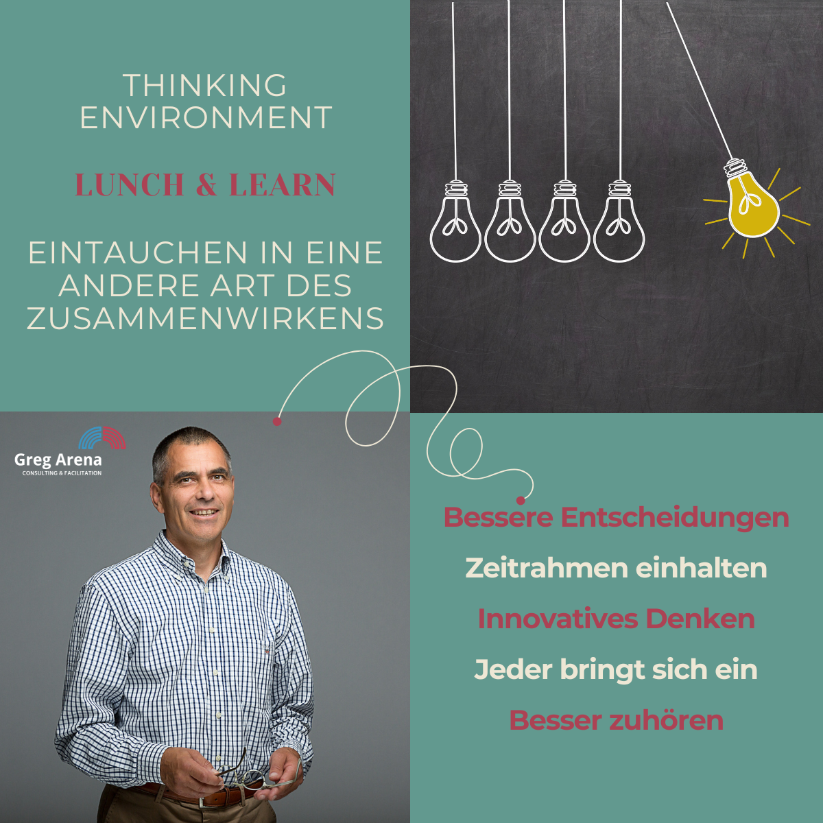 Die Qualität unseres Denkens und Handelns erhöht sich durch „Time To Think“: Es gibt einen klaren Zeitrahmen, jeder beteiligt sich, was eine bessere Entscheidungsqualität mit sich bringt. Kreative und gute Lösungsansätze finden in der Umsetzung eine höhere Akzeptanz. So effizient war Team Arbeit noch nie.